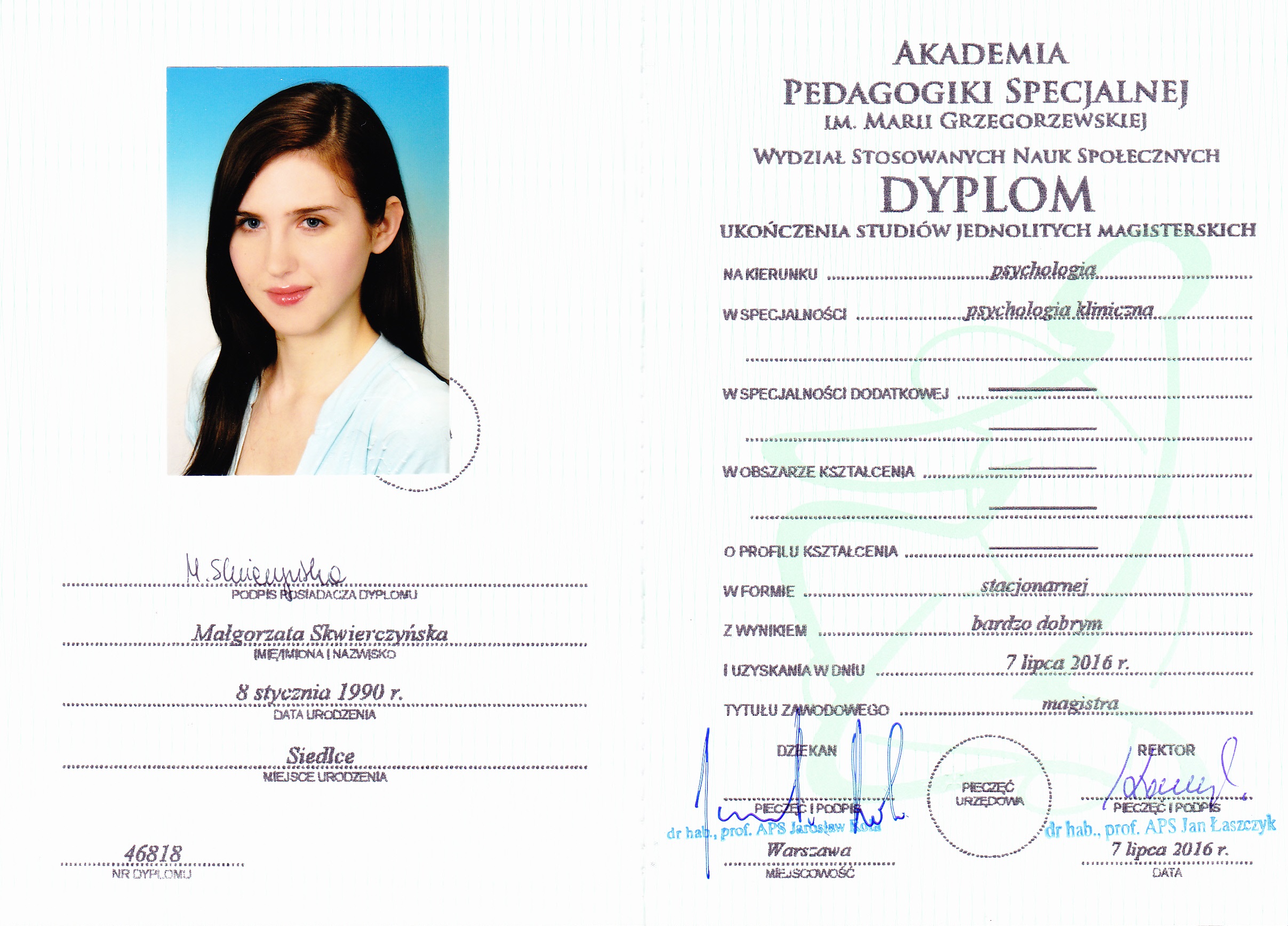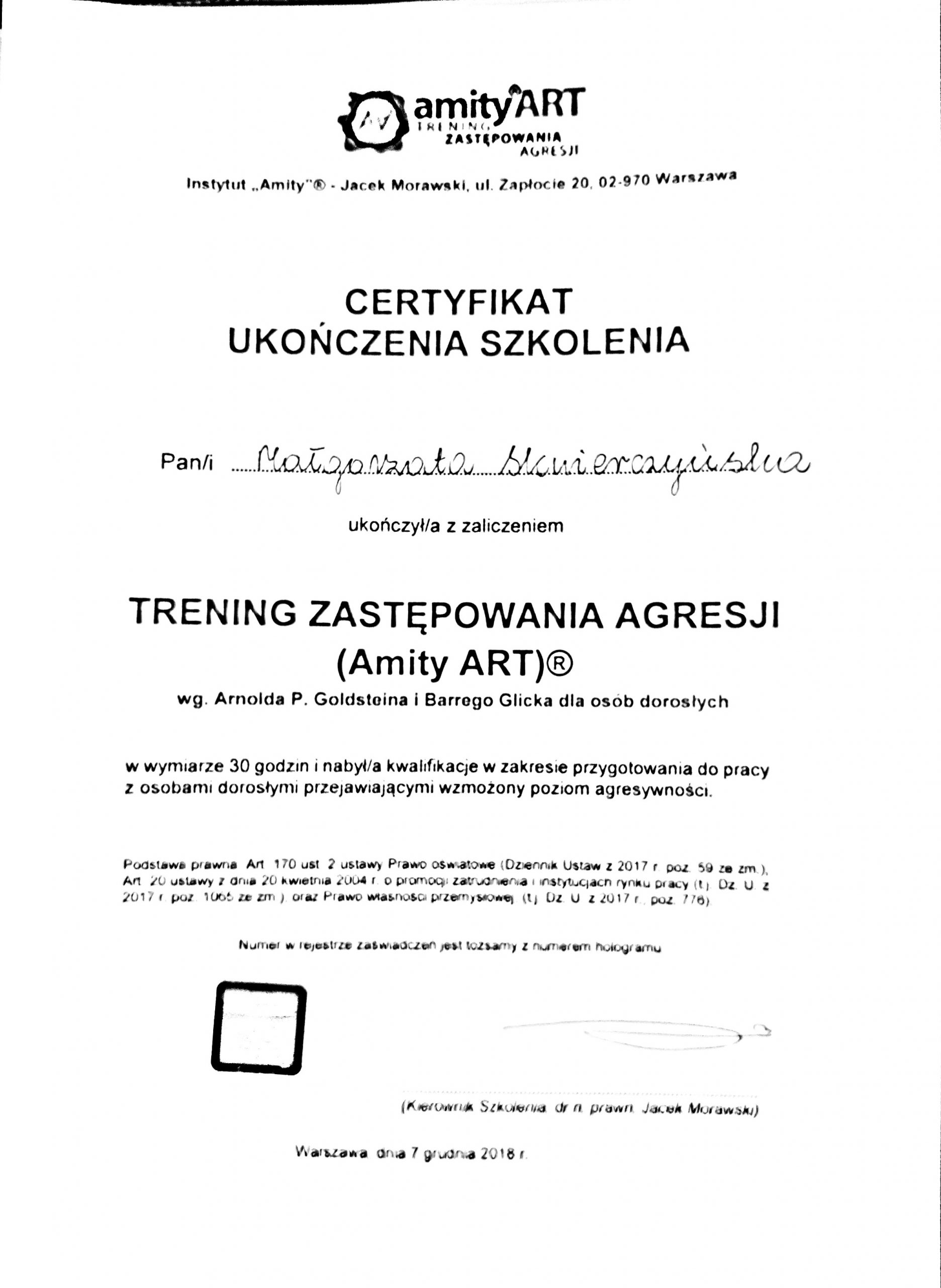 Doświadczenie zawodowe zdobywałam w trakcie zatrudnienia na oddziale psychiatrycznym, jednostce wojskowej oraz misjach wojskowych poza granicami państwa. Poza tym odbywałam staże w ośrodku interwencji kryzysowej i fundacjach zajmujących się pomocą psychologiczną. Odbyłam szereg szkoleń doskonalących m. in. Trening Zastępowania Agresji, szkolenia dotyczące mobbingu w pracy oraz w sieci.
